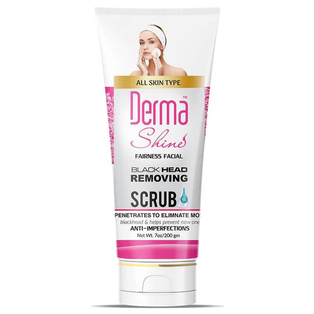 Derma Shine Blackhead removing scrub gently exfoliates cleanses and tightens pores. Its exfoliating beads along with salicylic acid prevent the skin from itchiness, irritation, and breakouts.